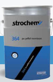 Strochem PU Membran 364; şeffaf, elastik, güneş ışınlarına dayanımlı, tek bileşenli alifatik, poliüretan esaslı, uzun ömürlü su yalıtım malzemesi. Özel bir kürleşme sistemine sahip nemle tetiklenen bir sistem ve hava kabarcığı oluşumuna sebep olmaz.